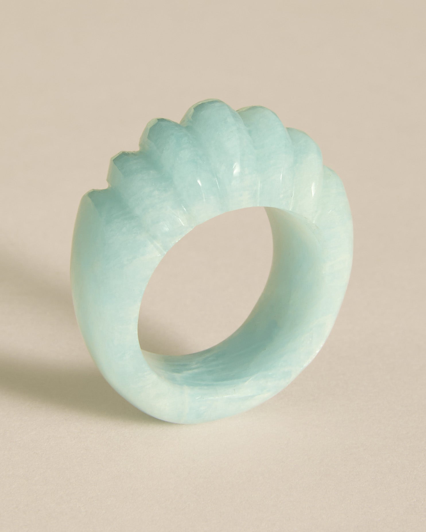 Shell ring handcrafted from amazonite stone to resemble the natural form of a shell.
